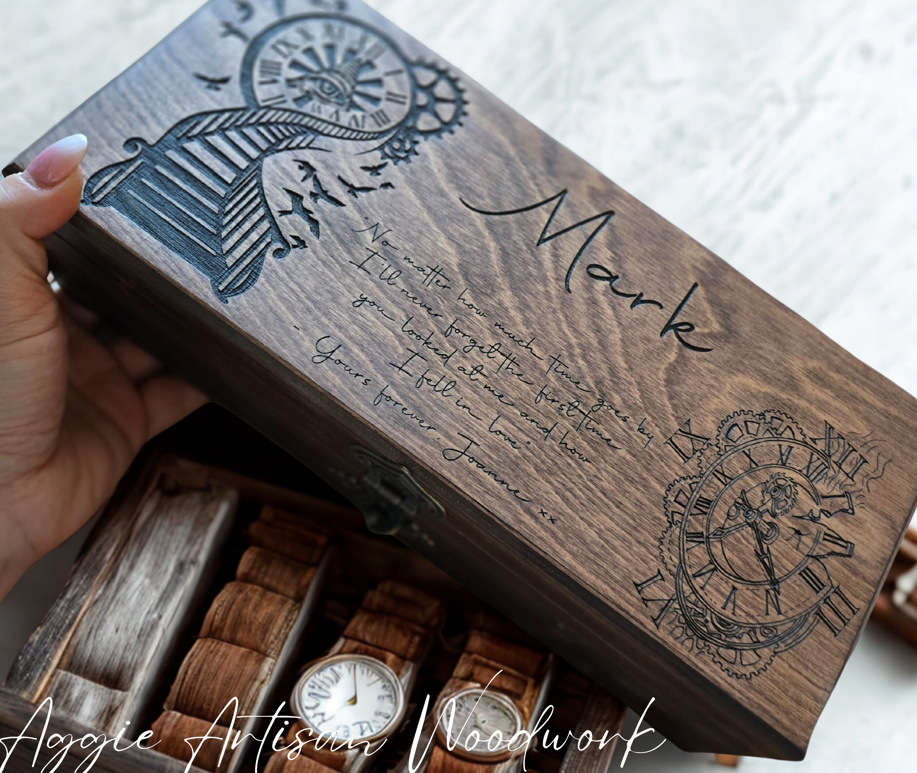 Handcrafted Personalised Wooden Watch Box for 6 Watches