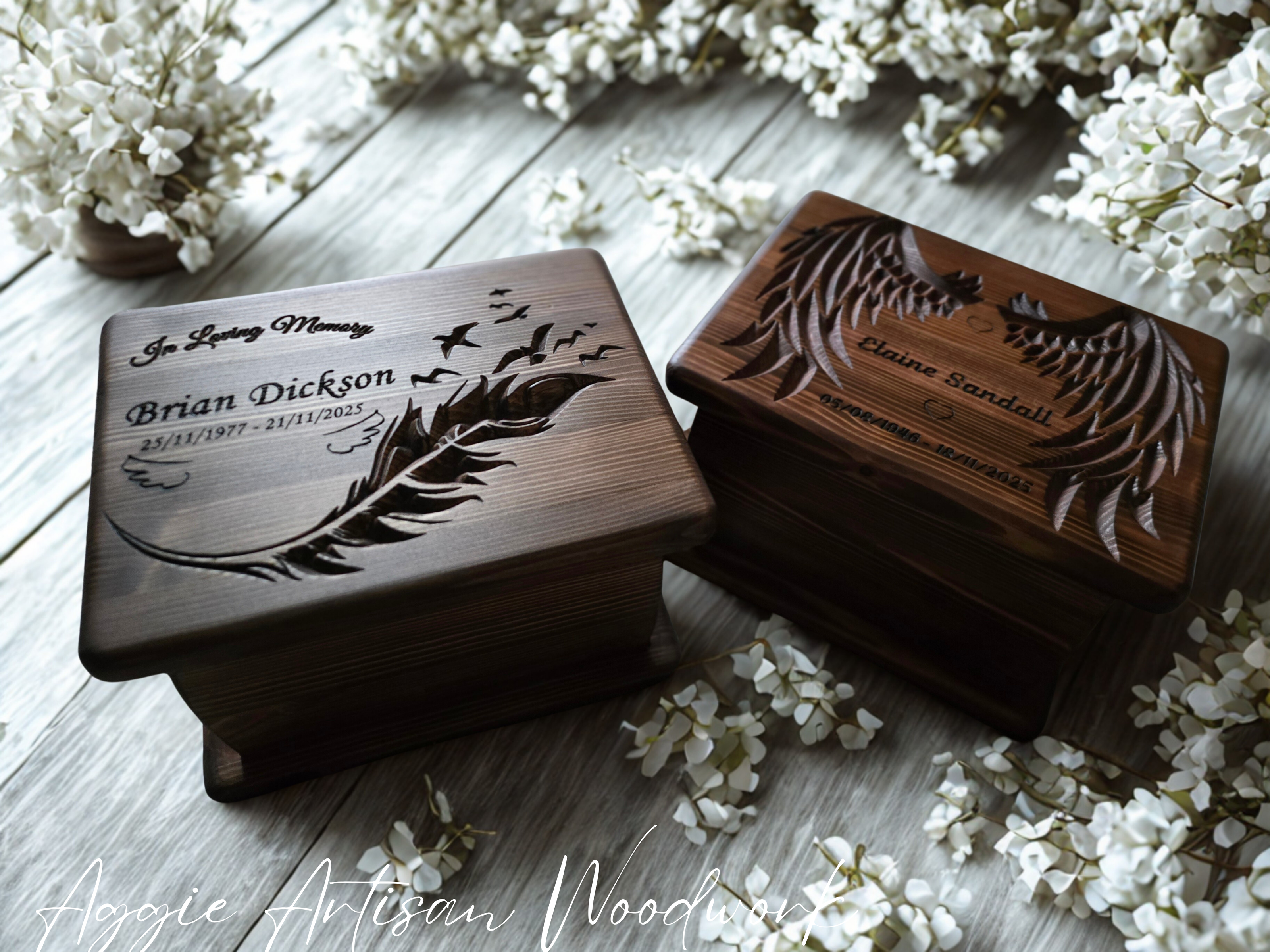 Handcrafted Wooden Memorial Urn with Angel Wings
