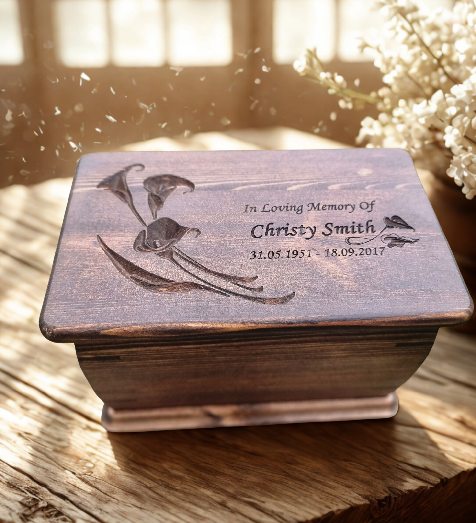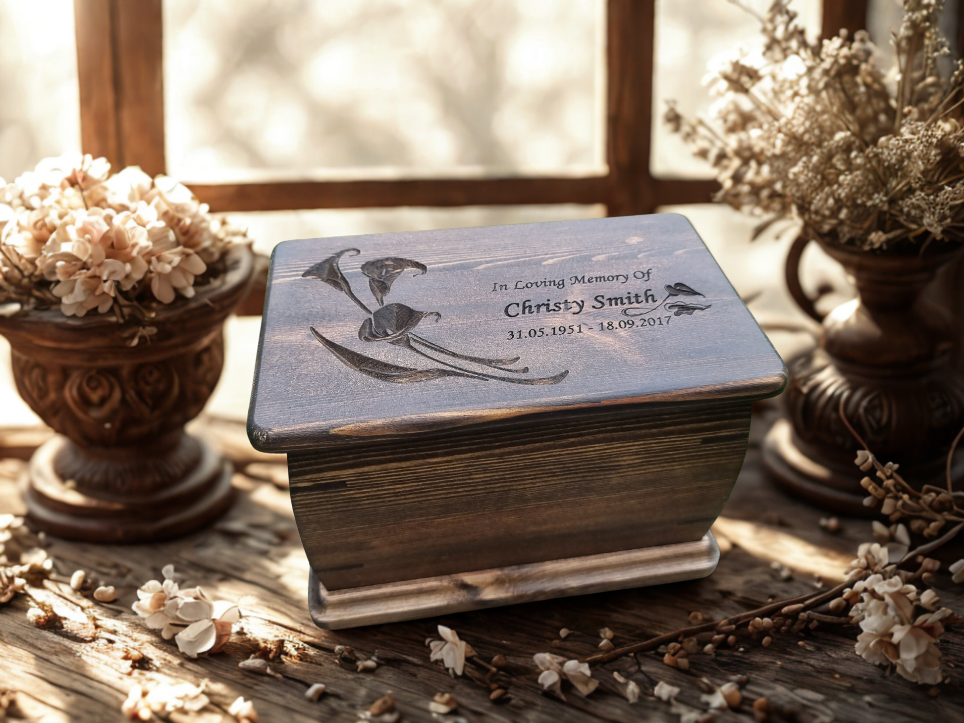Handcrafted Wooden Cremation Urn – Lily Memorial Design