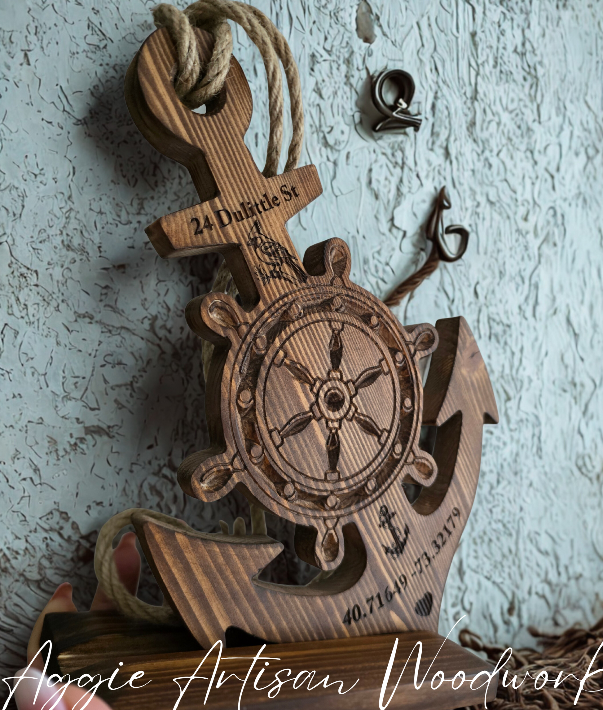This handcrafted wooden anchor with an engraved ship wheel is a timeless memorial piece, created to honour the memory of a loved one. Made from solid pine wood, it symbolises guidance, peace and everlasting connection.
