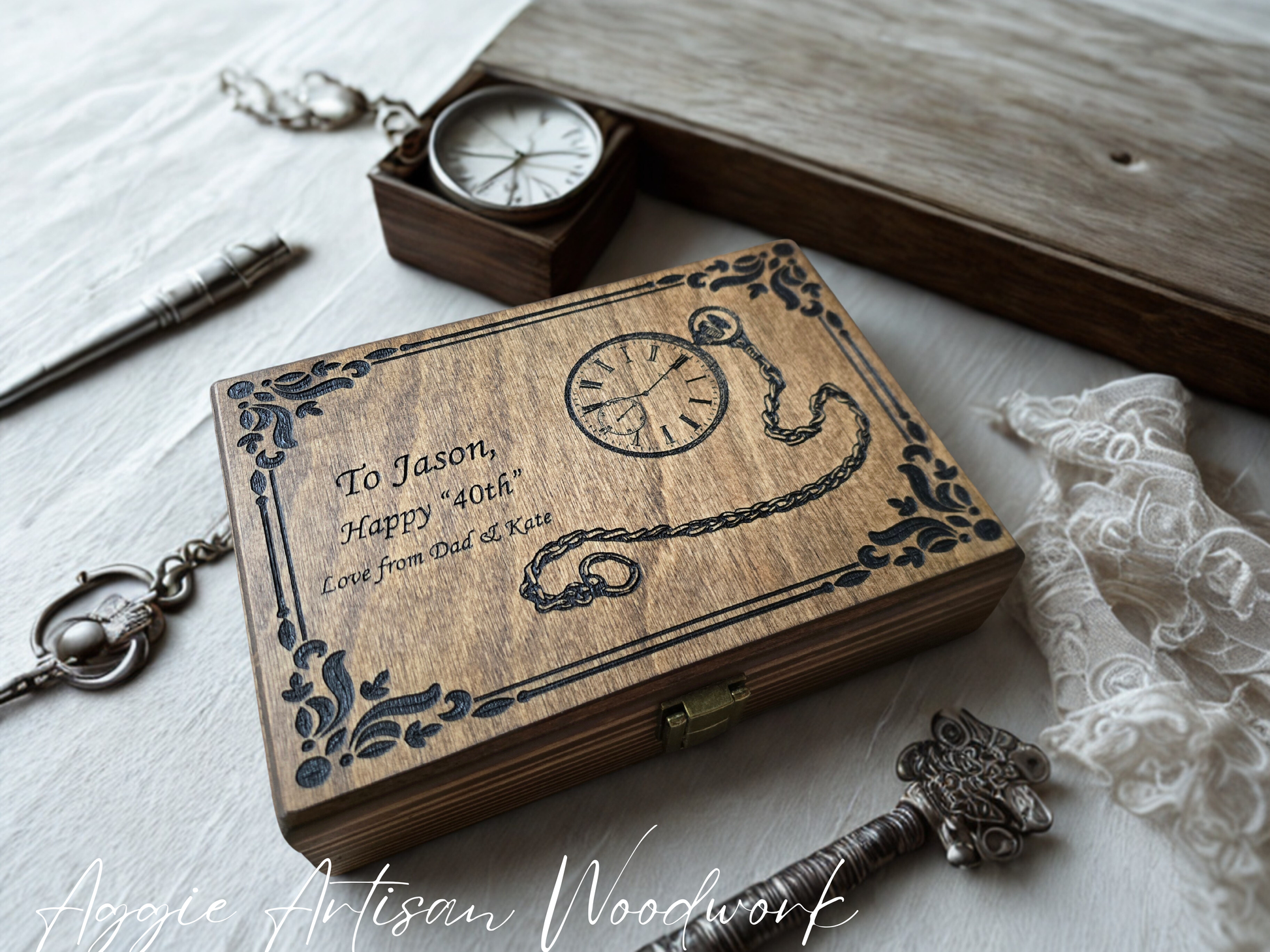 Personalised Pocket Watch Wooden Box – Handmade Keepsake with Black Felt Interior