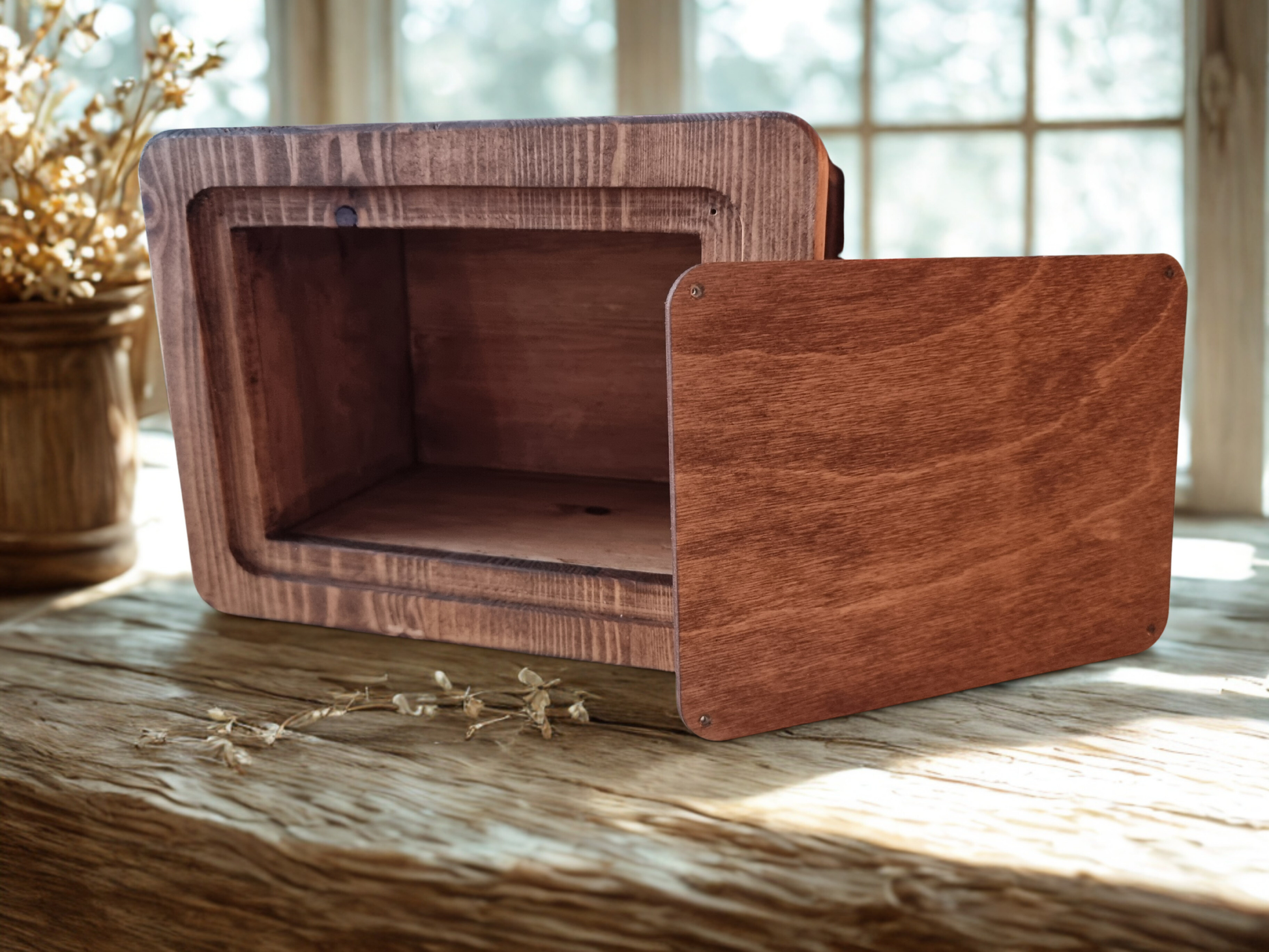 Every urn is unique due to the natural wood grain and handmade process.