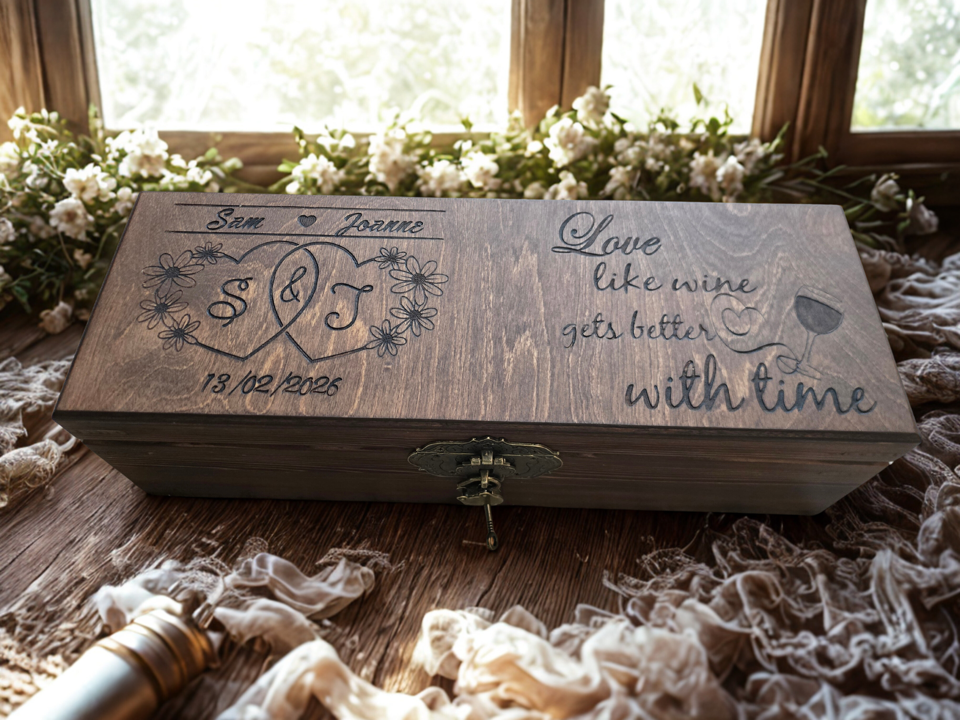 A handcrafted wooden wine box created to celebrate love and meaningful moments.